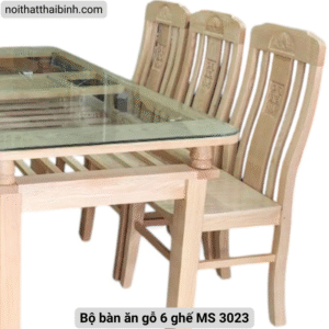 Trả lời: Bộ bàn ăn gỗ 6 ghế thường được làm từ gỗ tự nhiên như gỗ sồi, gỗ xoan đào hoặc gỗ hương, đảm bảo độ bền cao, khả năng chịu lực tốt và tuổi thọ lâu dài.