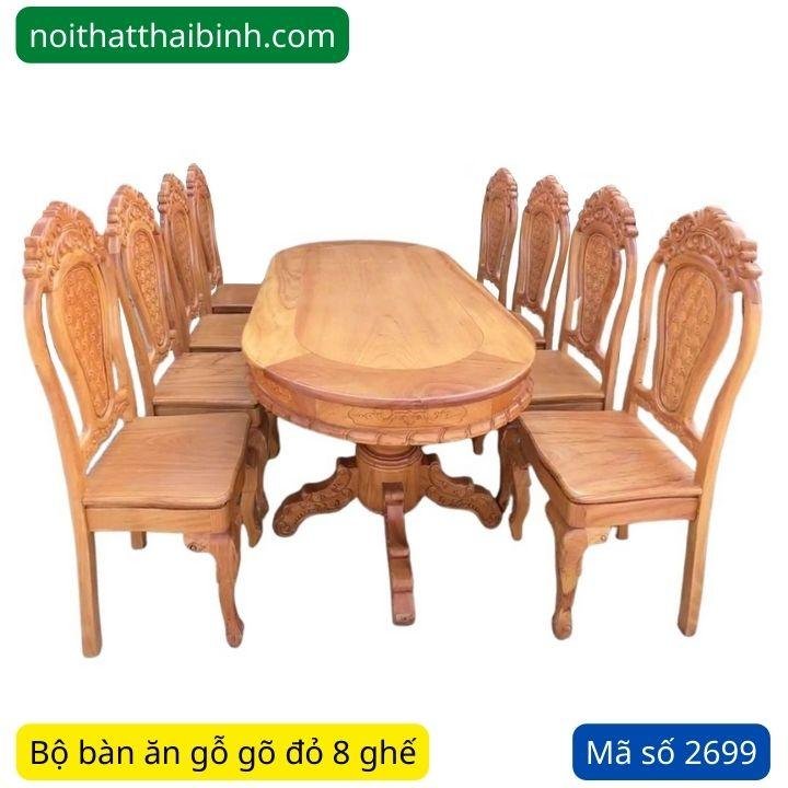 Bộ bàn ăn gỗ gõ đỏ ovan 8 ghế MS 2699
