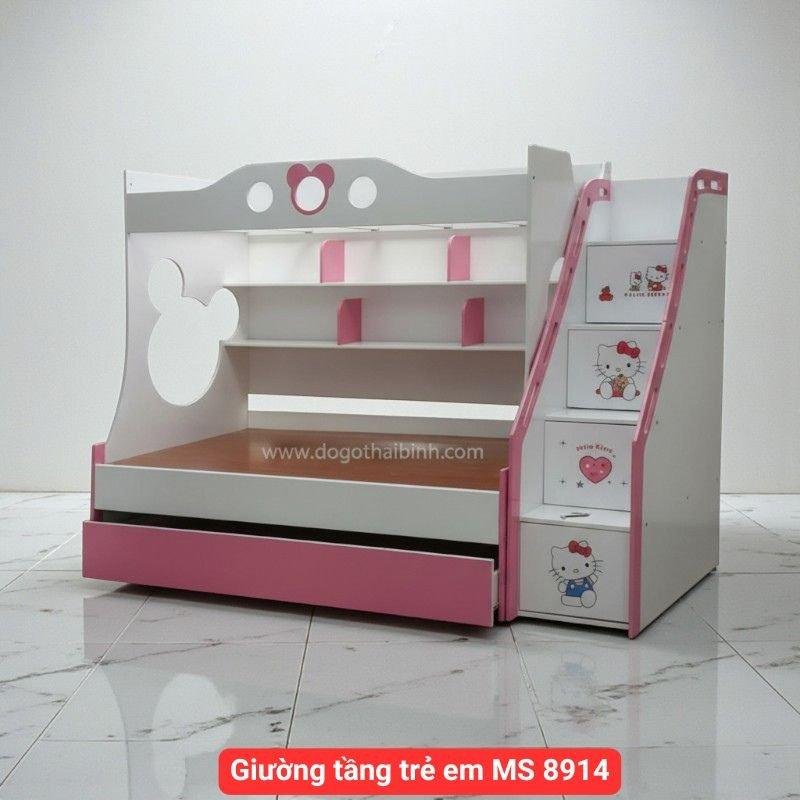 Giường tầng trẻ em đẹp là lựa chọn lý tưởng cho các gia đình có không gian phòng ngủ hạn chế nhưng vẫn muốn tạo môi trường sinh hoạt tiện nghi, thẩm mỹ và an toàn cho bé. Mẫu giường tầng tại Nội Thất Thái Bình được thiết kế hiện đại, phối màu trắng – hồng dễ thương, phù hợp cho bé gái và gia đình trẻ.