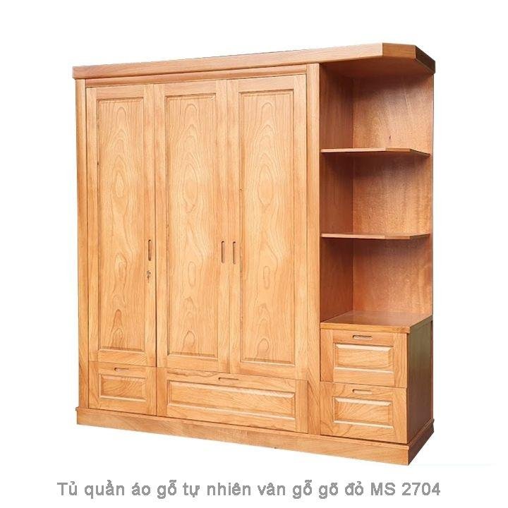 Tủ quần áo gỗ tự nhiên gõ đỏ có kệ MS 2704